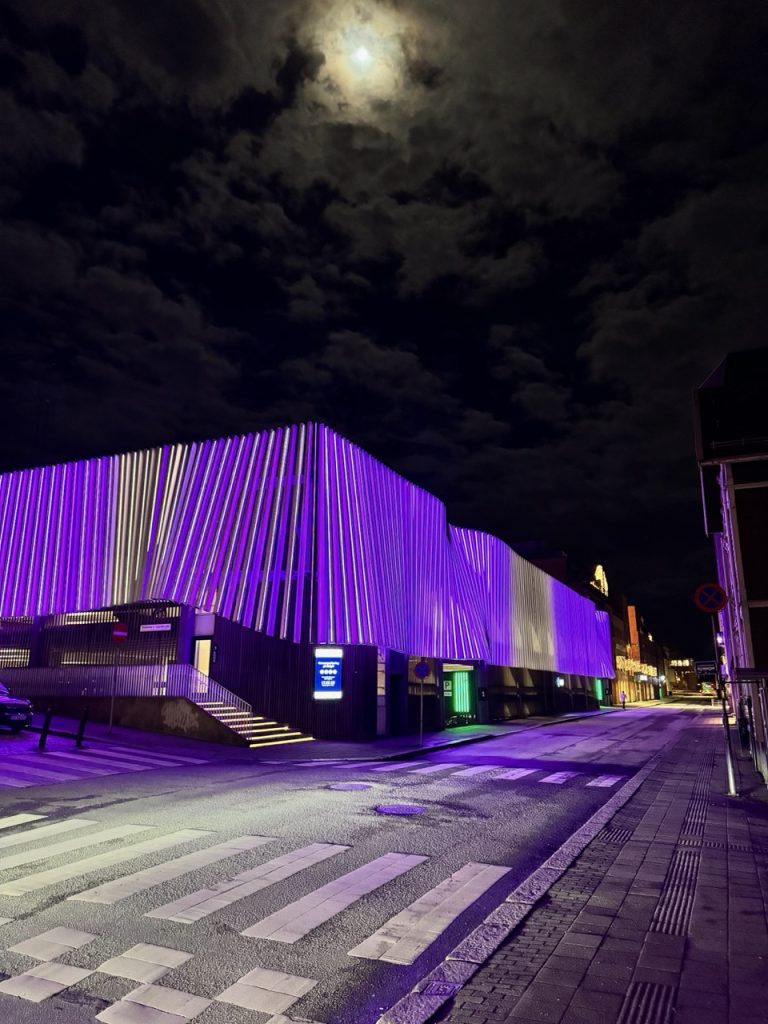 The main feature is an undulating aluminum facade that marks entrances and gives the building a distinct character, combined with a rear curtain wall in natural material. The facade is active – both visually and culturally – and can be illuminated to create moods and mark occasions throughout the year, such as New Year’s Eve, Pride, the Pink Ribbon campaign or red, white and blue on May 17. In this way, the parking garage becomes a new and vibrant element in the city center, and a building that can convey joy, community and commitment.