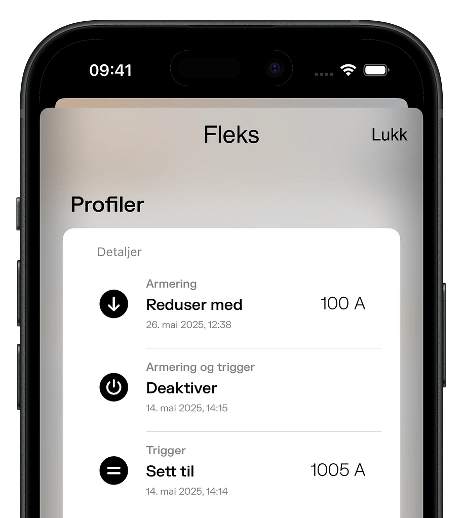 - Ønsket verdi i kW, ampere eller prosent av nåværende forbruk